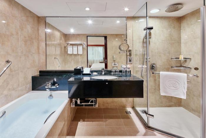 Rooms feature a kitchen and a bathroom. Air conditioning ensures comfortable temperatures. Rooms include a double bed. Amenities in some rooms include a safe and a minibar. A mini fridge and a tea/coffee station are standard features. Equipped with internet access, a telephone and a TV, the rooms provide many ways for guests to stay connected and entertained. Guests will also find slippers in their rooms. Bathrooms are equipped with a shower and a bathtub, as well as a hairdryer. The hotel has 601 non-smoking rooms.