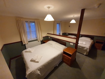 We stayed here as a family of 4 for 1 night on the bank holiday August weekend. We were very impressed with the room we had. It had a double bed then a little half wall then 2 full sized singles. Tv...