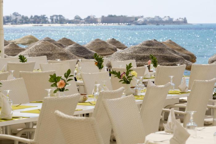This golf hotel is situated in a peaceful setting, in Hammamet, right on the sandy beach. Guests can reach the center after about a quarter mile. The nearest airport is Tunis (TUN), located approximately 35 miles away.