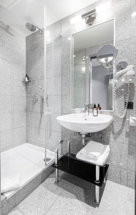20 single rooms and 130 double rooms are located on 6 stories and can be reached by elevator. The reception desk in the lobby is staffed around the clock. Services and facilities include a safe, a conference room and a business center. Wireless internet access is provided in public areas. The hotel offers a number of facilities for guests with disabilities. There are a number of shops as well. A garden provides extra space for rest and relaxation in the open air. Guests arriving by car can park their vehicles in the garage or in the parking lot.