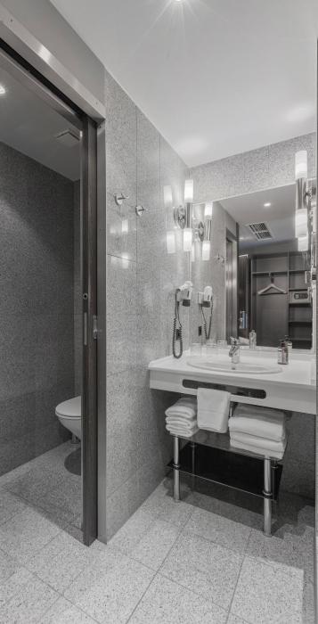 Air conditioning and individually adjustable heating ensure that rooms maintain comfortable temperatures. Rooms include a double bed. A safe and a minibar are also available. Guests will also find a mini fridge included among the standard features. Equipped with a telephone, a television with satellite/cable channels, a radio and WiFi, the rooms provide many ways for guests to stay connected and entertained. A hairdryer and a vanity mirror are available in the bathrooms, which are equipped with a shower and a bathtub. Wheelchair-friendly rooms can be reserved. The hotel has family rooms and 150 non-smoking rooms.