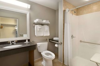 Make yourself at home in one of the 91 air-conditioned rooms featuring refrigerators and microwaves. 32-inch flat-screen televisions with digital programming provide entertainment, while complimentary wireless Internet access keeps you connected. Bathrooms have shower/tub combinations and complimentary toiletries. Conveniences include coffee/tea makers and irons/ironing boards, and housekeeping is provided daily.