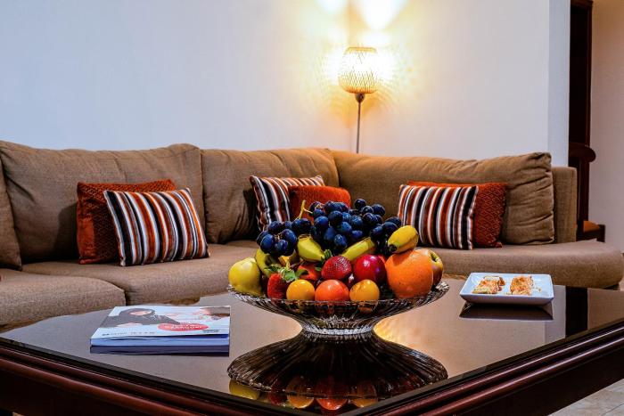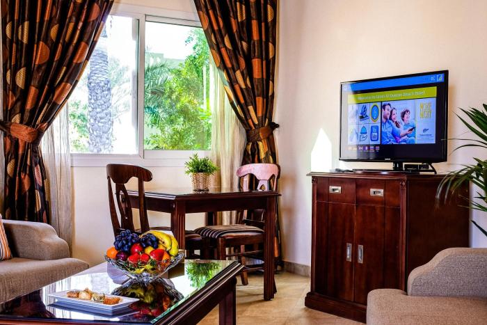 Rooms feature a living area and a bathroom, and air conditioning ensures just the right temperature. In some rooms, a terrace provides additional space for relaxation. The rooms have a king-size bed and a sofa bed. Separate bedrooms can be reserved. Extra beds can be requested. A minibar is provided. Additional features include a refrigerator and a mini fridge. A telephone and a TV are provided as well. Bathrooms are equipped with a shower and a hairdryer.