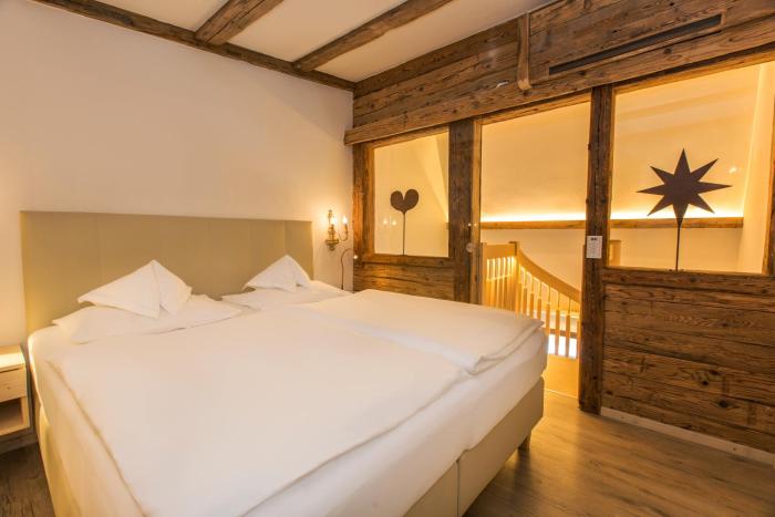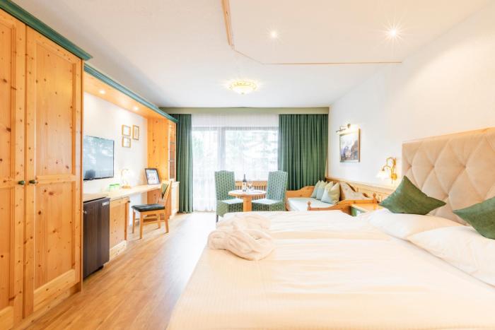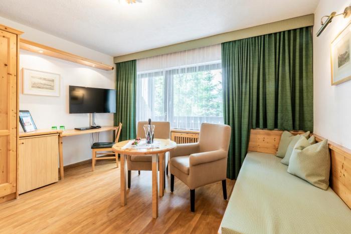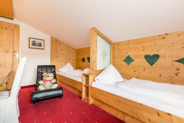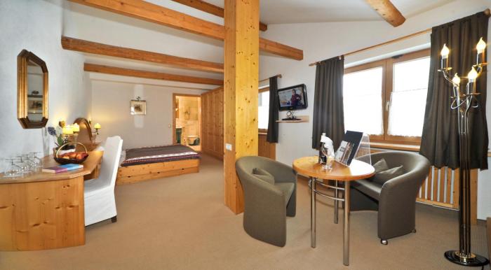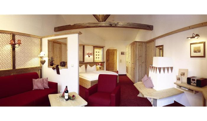 4 junior suites, 4 single rooms and 48 double rooms are located on 3 stories and can be reached by elevator. Check-in and check-out are possible at any time at the 24-hour reception desk. A safe, a playroom, a childcare service, room service, a conference room and a business center are available. Wireless internet access (for a fee) allows guests to stay connected while on vacation. A fireplace creates a cozy atmosphere. The grounds of the hotel feature a playground and a lovely garden. Guests arriving by car can park their vehicles in the garage or in the parking lot. Cyclists can make use of the bicycle storage area and rental service.