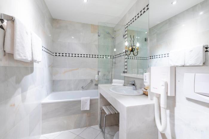 Rooms are equipped with air conditioning and central heating. A welcome gift awaits guests. Some rooms have a balcony, which gives guests additional space for rest and relaxation. Children's beds can be requested for younger guests. A safe and a minibar are also available. Extra comforts include a mini fridge. Equipped with a direct dial telephone, a television with satellite/cable channels, a radio, a DVD player and WiFi, the rooms provide many ways for guests to stay connected and entertained. Guests are always kept up-to-date thanks to the daily paper provided. A hairdryer and bathrobes are available in the bathrooms, which are equipped with a shower and a bathtub. The hotel has non-smoking rooms.