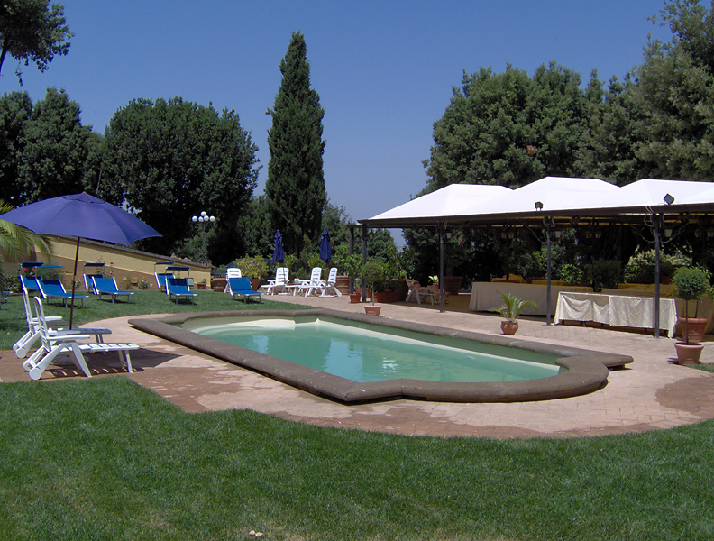 Large hotel in excellent situation outside and above Frascati. I stayed with a group to visit gardens in the area and we had a coach for transport as it is not possible to walk to and from town...