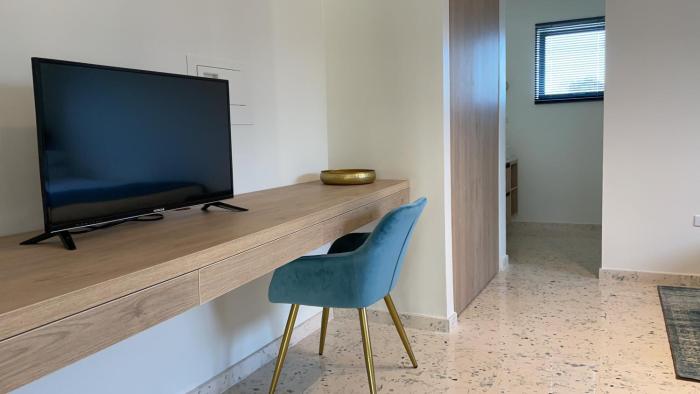 Rooms are equipped with air conditioning and a fan. Guests are sure to get a good night's sleep in the sofa bed. Guests can also reserve separate bedrooms. All kitchenettes come with a refrigerator, a microwave and a tea/coffee station. An ironing set is provided for guests' convenience. A flatscreen television with cable channels and WiFi (no extra charge) are provided as well. A hairdryer is provided in the bathrooms. For extra comfort in the bathrooms, guests are offered cosmetic products. Guests can also reserve wheelchair-friendly rooms with wheelchair-accessible bathrooms.