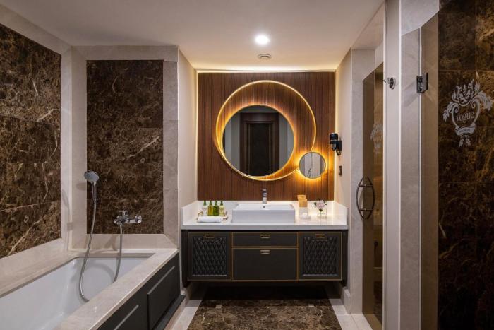 Make yourself at home in one of the 601 air-conditioned rooms featuring free minibar items and espresso makers. 32-inch LCD televisions with satellite programming provide entertainment, while complimentary wireless Internet access keeps you connected. Private bathrooms have rainfall showerheads and complimentary toiletries. Conveniences include phones, as well as safes and blackout drapes/curtains.
