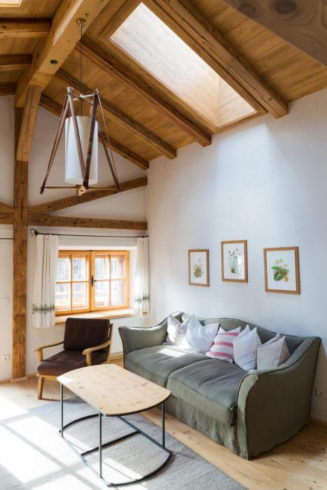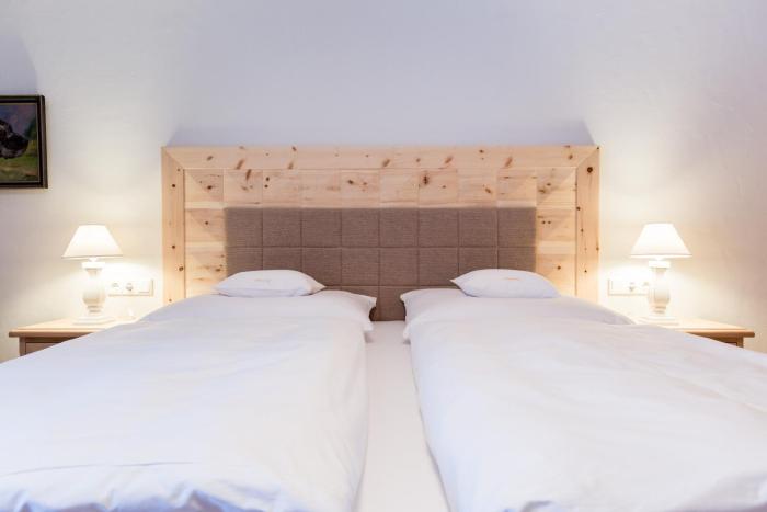 The hotel is a coverted huge farmhouse, located on the edge of the small village of Bramberg. Every room has a different interior. Ours was very bright with a large modern fourposter bed. The place...