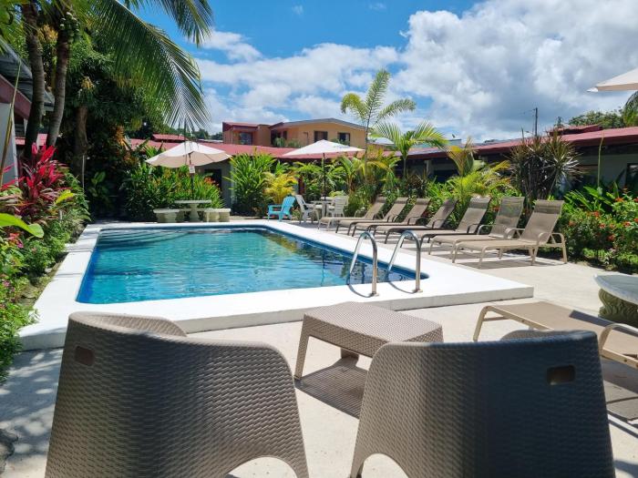 Wide Mouth Frog features a restaurant, outdoor swimming pool, a shared lounge and garden in Quepos. Featuring family rooms, this property also provides guests with a sun terrace. Free WiFi and a shared kitchen are featured.