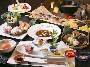 This ryokan features hot springs on site.